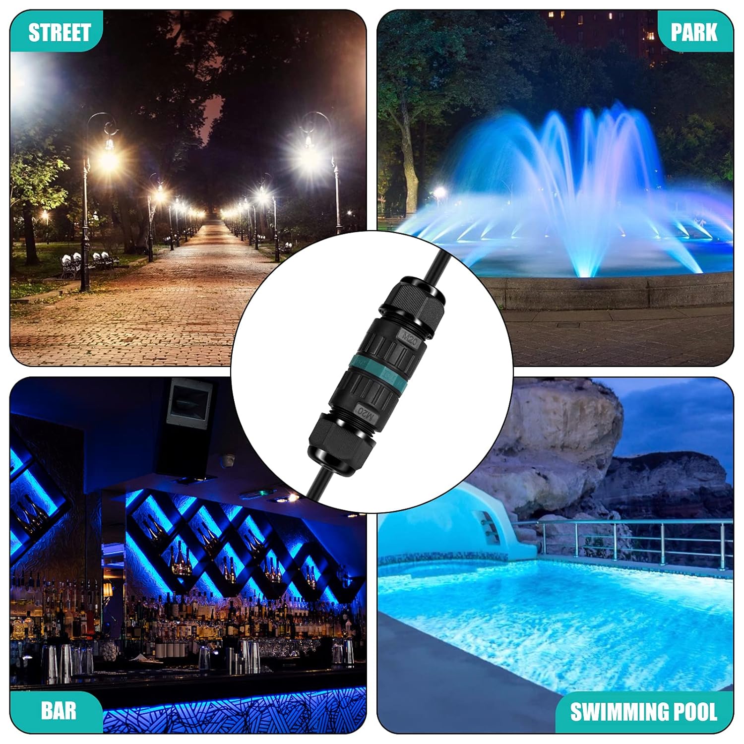 Conector totalmente estanco (IP68), para conexiones exteriores al aire libre, con 3 contactos 2p+tierra parea cables de 0,5mm a 2,5mm.