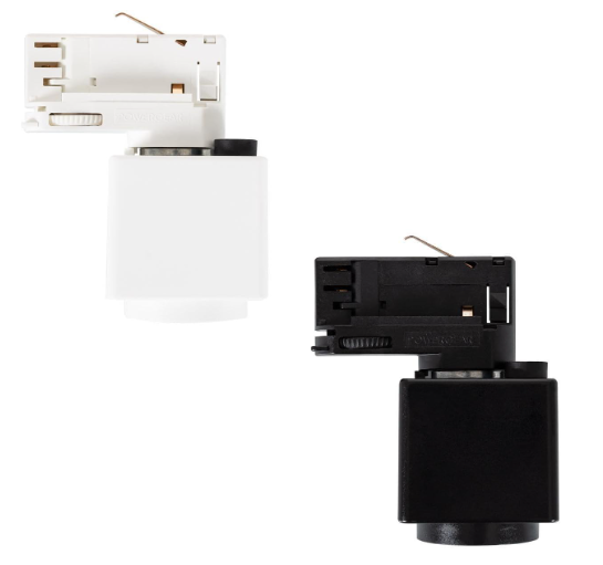 Solución práctica y flexible para tomas eléctricas en carriles de iluminación.