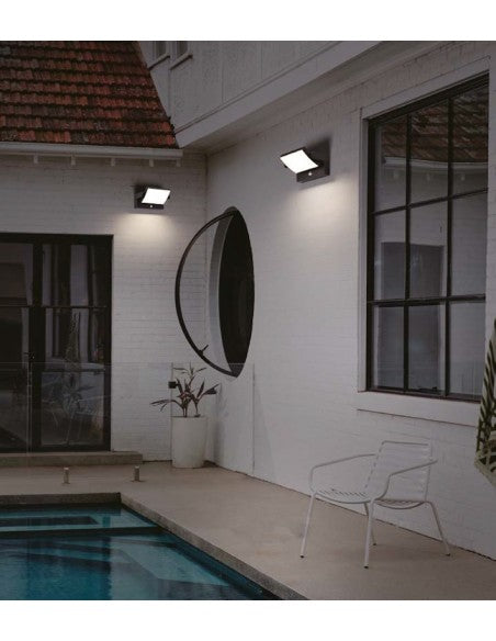 Aplique interior / exterior basculante de 13w en blanco cálido 3.000ºk, de aluminio y difusor policarbonato. Color negro. Apto para exterior con un IP54