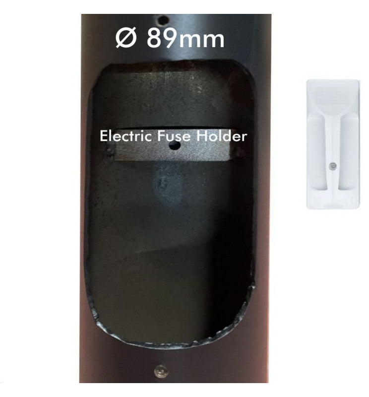 Columna galvanizada lacada en color negro mate RAL9005. Medidas en 3 o 4 mts, con compuerta para conexión eléctrica y punta de acoplamiento de luminária de 60mm. Anclajes incluidos para atornillar en base de hormigón.
