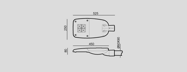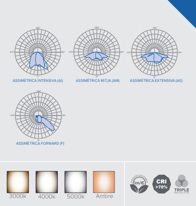 Altura de montatge ente 4/6 mts, acoplamiento a columnas de diametro 60mm orientable e inclinable -15º / 15º