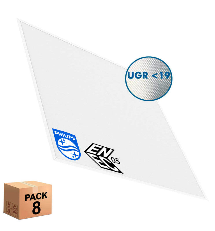 Panel led profesional de 40w, 4.800lm, con marco blanco, difusor micro-prismático y normativa anti-deslumbramiento UGR-19. 5 años de garantía
